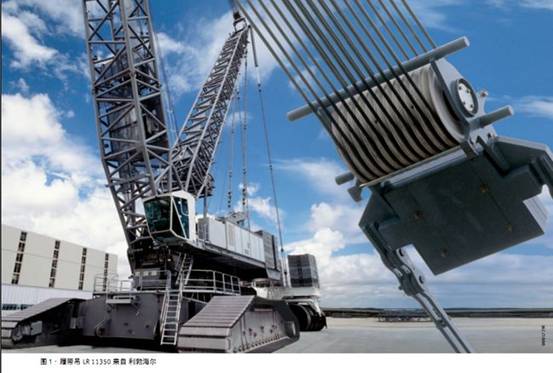利勃海爾履帶吊LR 11350是目前世界上***大的桁架吊臂起重機之一圖 1。同時也是世界上***高的履帶吊之一,桁架吊臂總高度228 m,吊鉤高223 m。2006年11 月,在德國庫克斯港的一個測試點豎起兩臺5MW 海上風力發(fā)電機組的樣機,履帶吊LR 11350 出色的完成了這一任務。